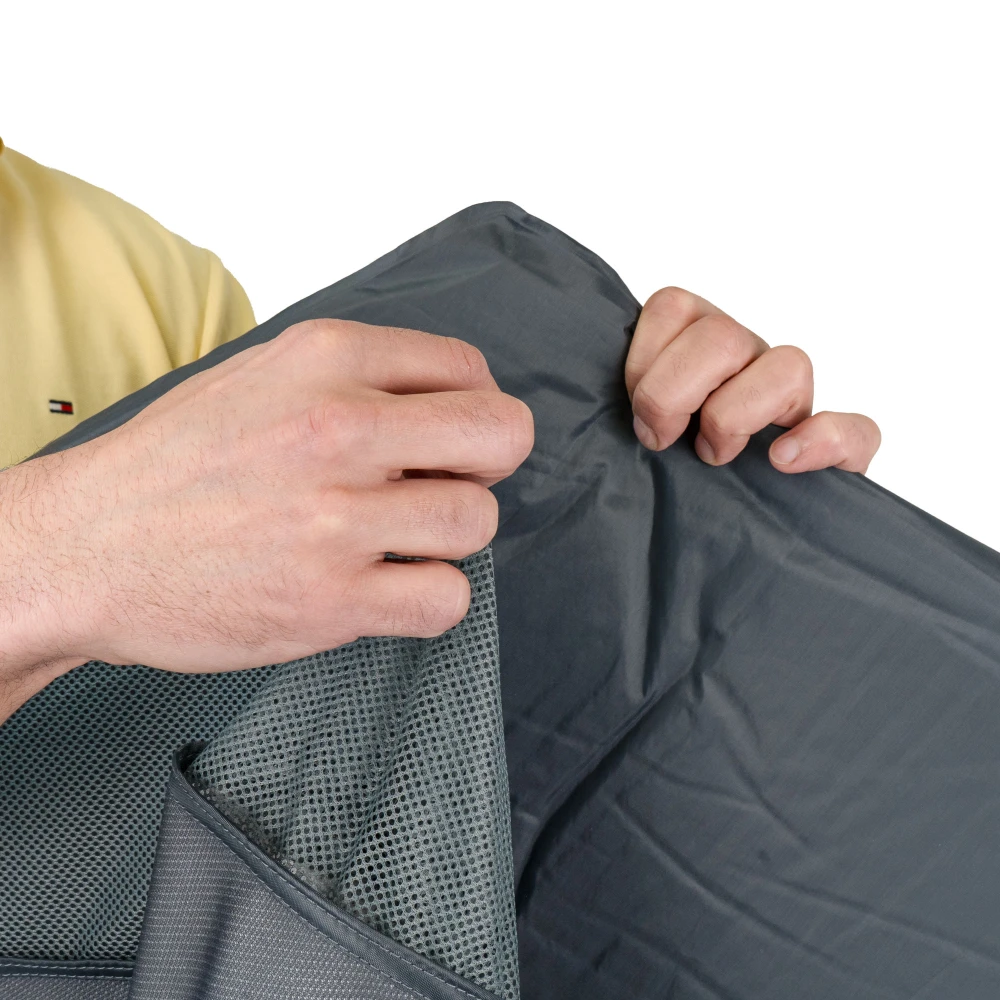 Der PETY Laufstall bietet Ihrem Hund einen sicheren und komfortablen Rückzugsort – zuhause, im Garten oder unterwegs. Er ist in rund 10 Sekunden auf- und abgebaut und dank seines geringen Gewichts ideal für Reisen und Ausflüge. Die luftdurchlässigen Netzwände sorgen für eine optimale Belüftung und ermöglichen es Ihnen, Ihren Hund jederzeit im Blick zu behalten. Das Set besteht aus dem grossen PETY Laufstall, einer abnehmbaren Bodenfläche und einem passenden Dach, ist zusammenfaltbar, platzsparend verstaubar und wird mit Transporttasche geliefert. Für eine längere Lebensdauer empfehlen wir, die Bodenfläche mit einem geeigneten Überzug oder einer Decke zu schützen.