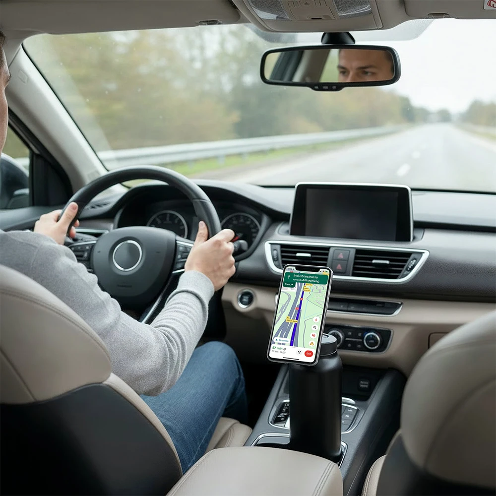 Der Deckel mit magnetischem Handyhalter macht Trinken, Musik hören oder Videos schauen besonders bequem.