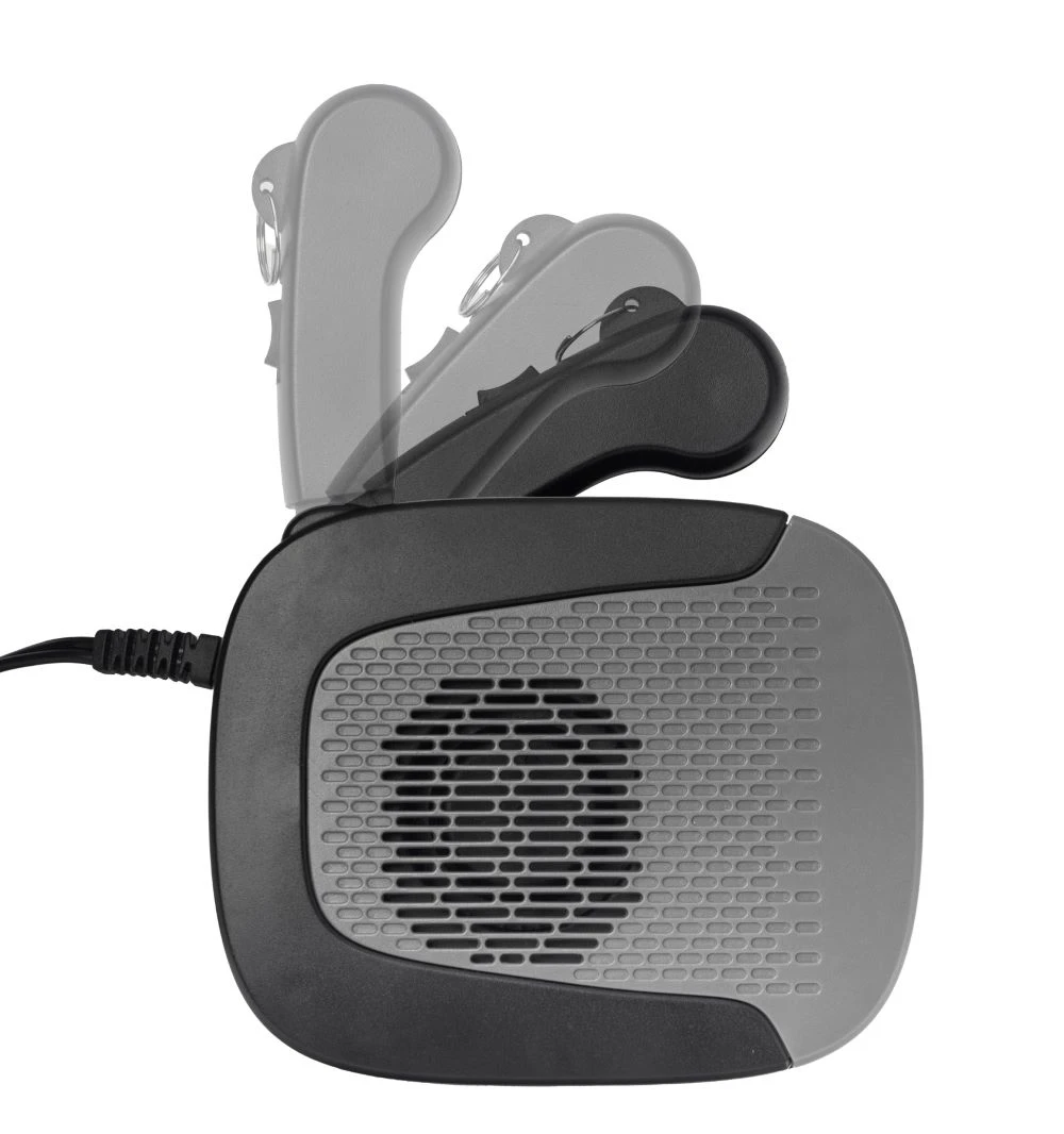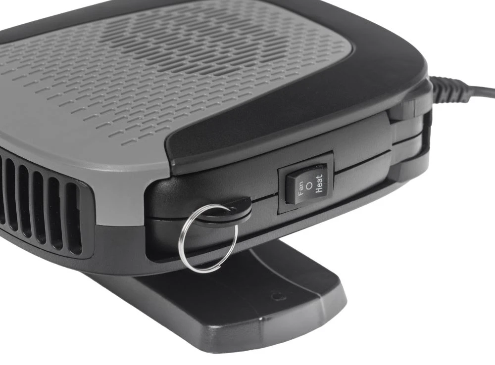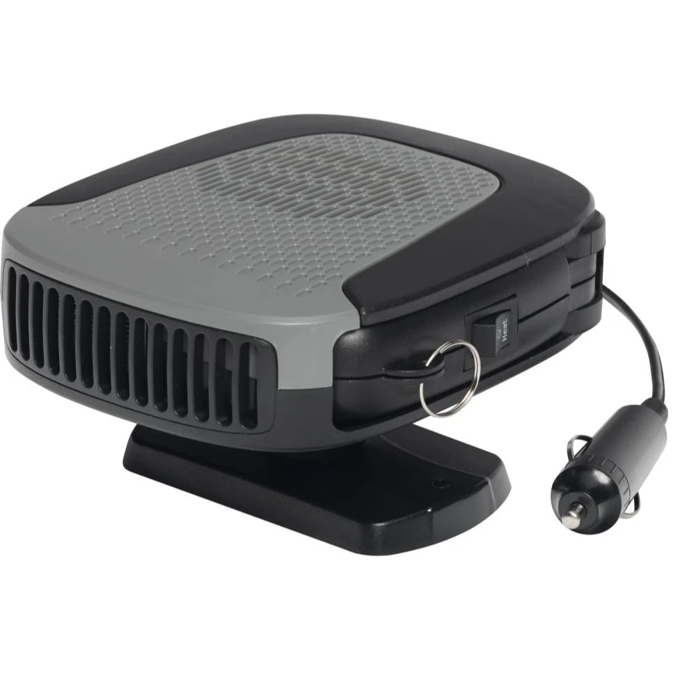 12 V Heizlüfter für Auto, Wohnmobil oder Boot. Sehr effizient, mit drehbarem Sockel für das Armaturenbrett und integriertem Kippschalter zum einfachen Wechsel zwischen Heizung und Ventilator. Der praktische Klappgriff macht ihn ideal auch als Entfroster. Stromversorgung über Zigarettenanzünderstecker; Befestigung über Schrauben oder die mitgelieferten doppelseitigen Klebeplatten. Anschlusskabel inklusive. Perfekt, um in kalten Wintern warm zu bleiben oder im Sommer frische Luft zu geniessen.