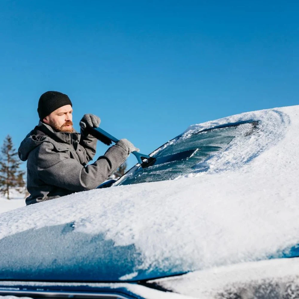 Der Schaber ist ausserdem mit Eisbrecherzähnen ausgestattet, die selbst hartnäckiges Glatteis beseitigen.