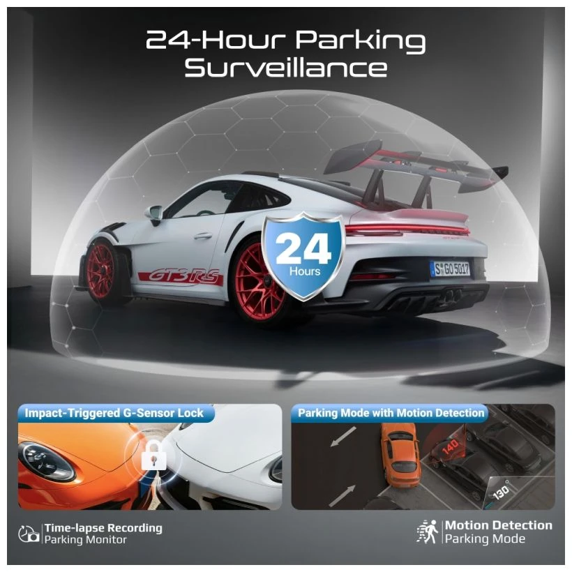 Der integrierte G-Sensor sichert wichtige Aufnahmen bei plötzlichen Stössen automatisch. Das Premium-Display mit Loop-Aufnahme gewährleistet eine einfache Bedienung sowie kontinuierliche Videoaufzeichnung ohne Speicherunterbrechung. So behalten Sie jederzeit den Überblick – unterwegs und im Stand.