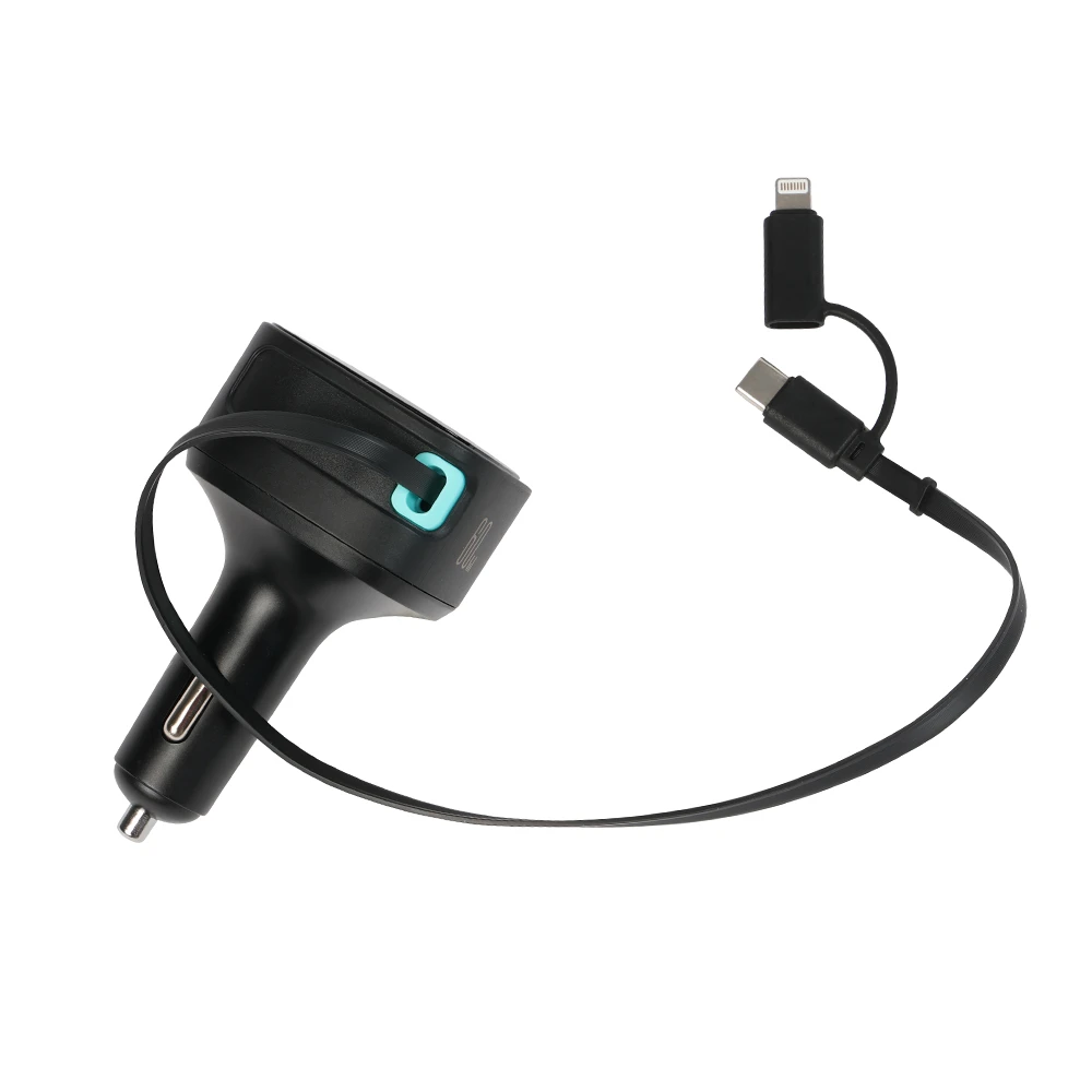Unterwegs ist es praktisch, wenn Ihre Geräte zuverlässig geladen werden. Dieses 60W Ladegerät bietet ein ausziehbares USB‑C- oder Lightning‑Kabel, das für Ordnung im Fahrzeug sorgt, sowie USB‑C- und USB‑A‑Anschlüsse für mehrere Geräte gleichzeitig. Eine funktionale Lösung für den täglichen Einsatz im Auto.