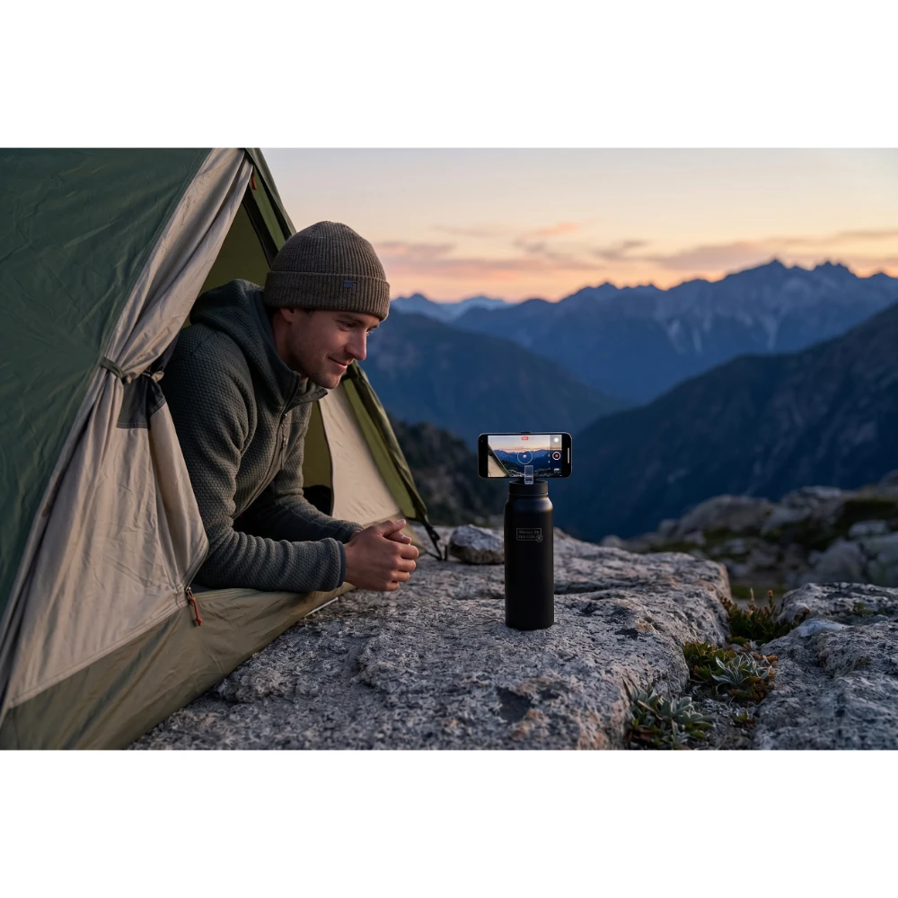 Trinkflasche mit Handyhalter/Stativ
