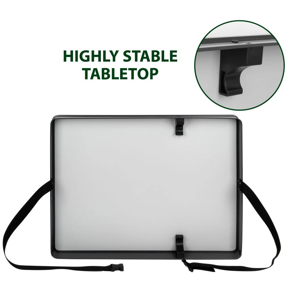 Folding table for outdoor use. It offers a sturdy surface and is lightweight for easy transport, ideal for picnics or outdoor activities. The compact design allows for easy storage. Show more