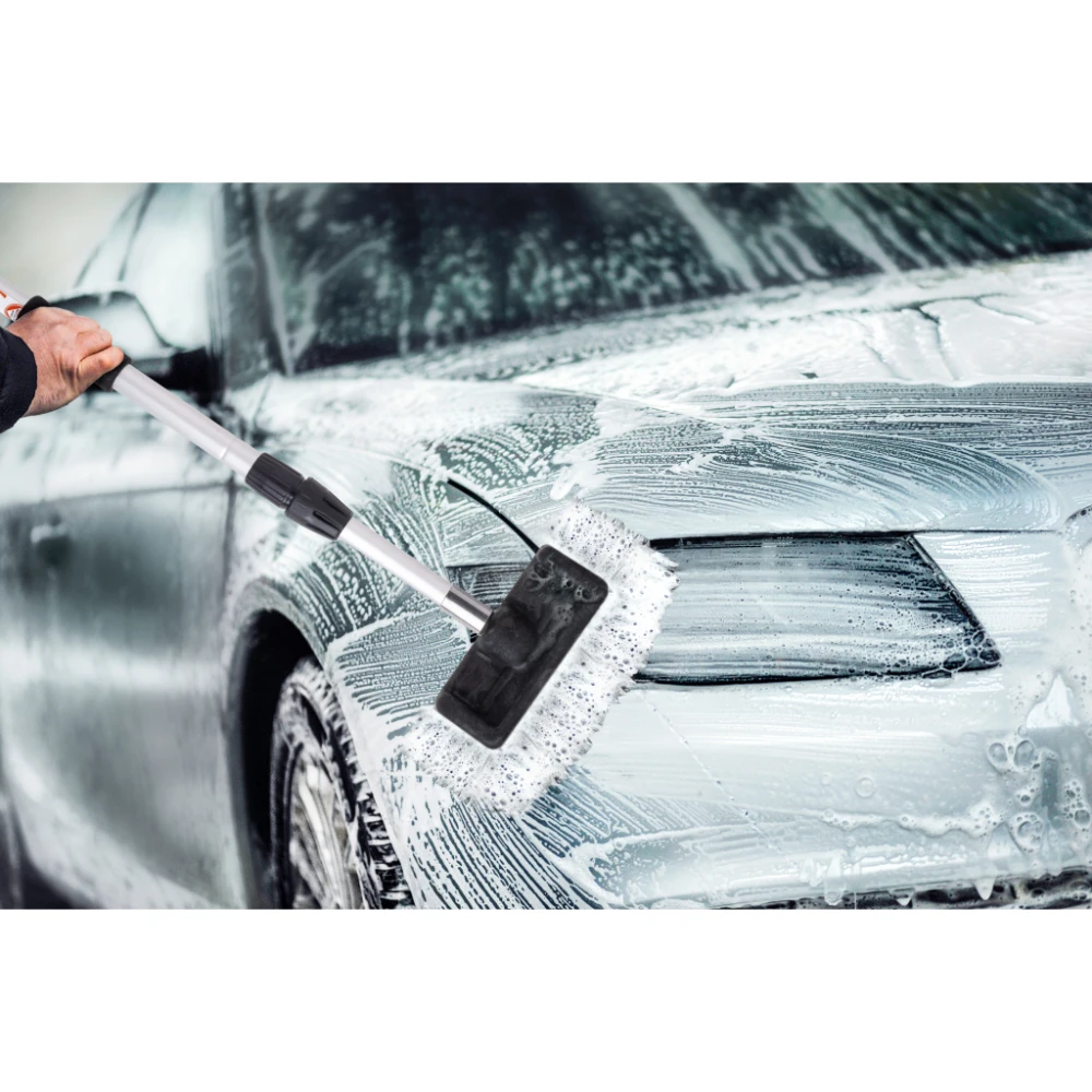 The Wosh brush delivers effortless vehicle cleaning: ultra-soft bristles, a telescopic handle up to 240 cm, and a quick-connect water system with on/off control. Perfect for motorhomes, caravans and cars. Show more