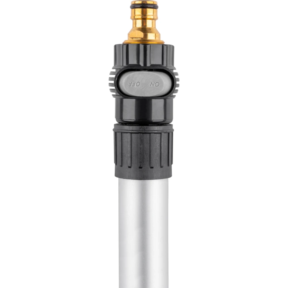 Equipped with a built-in quick connector, the brush attaches easily to a water hose. The integrated on/off switch allows direct control of the water flow. With a weight of 1.46 kg, it offers good handling and stability, making it ideal for vehicle maintenance while camping or travelling.