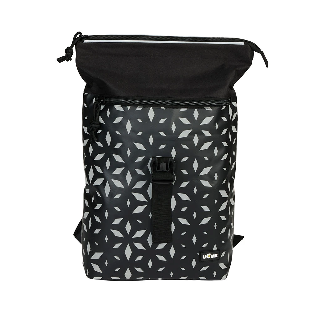 Sac à dos noir en Tarpaulin et polyester 600D avec impression et bande réfléchissante 3M. Robuste, spacieux, confortable – pratique, stylé et visible de jour comme de nuit. Afficher plus